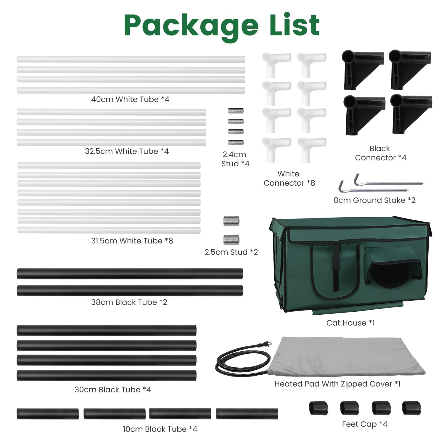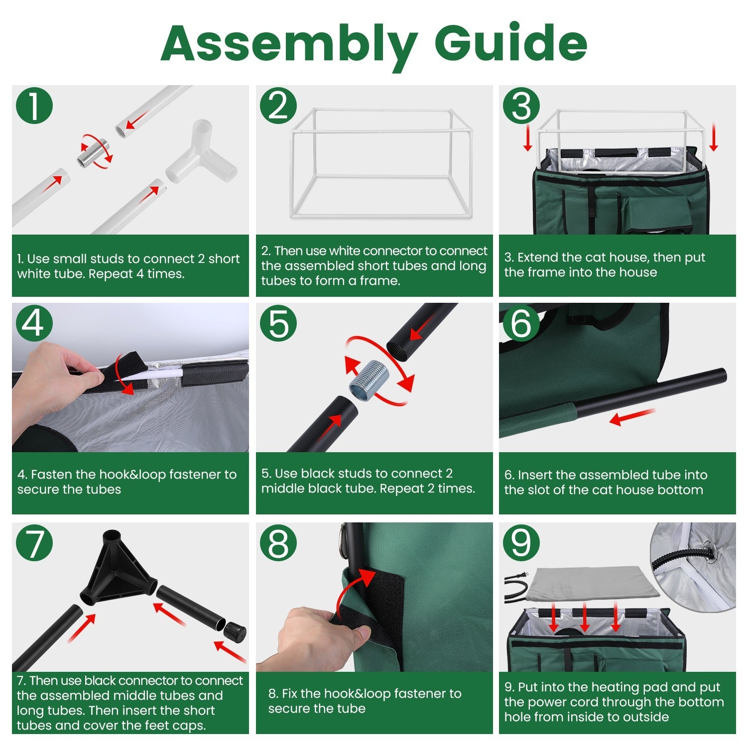 - *Multi-Usage Cat Shelter*: Requires no tools for assembly. Ideal outdoor winter shelter for garages,porches,barns,or cooler indoor areas—providing a warm cat cave with a built-in heating pad.